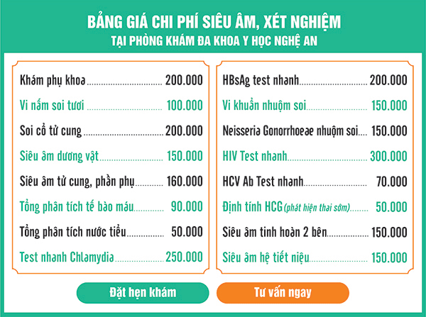 Tham khảo bảng giá một số xét nghiệm, siêu âm tại Phòng khám đa khoa y học Nghệ An.
